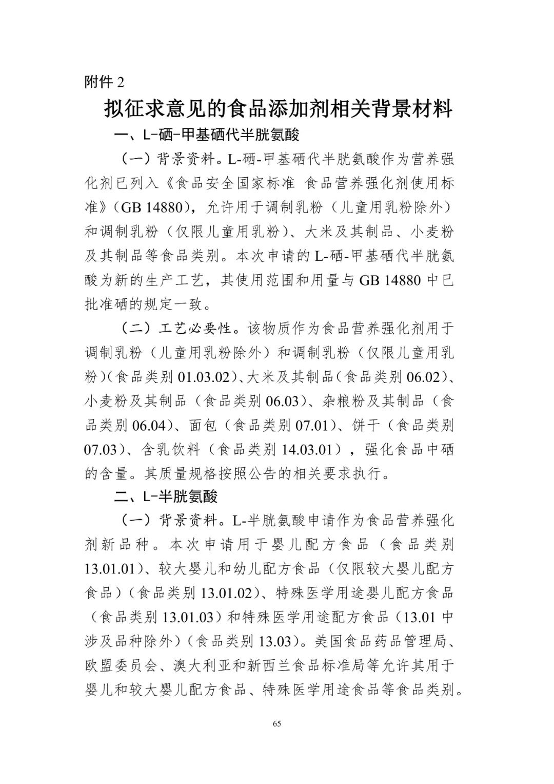 (1)L-硒-甲基硒代半胱氨酸的用量及使用范圍:L-硒-甲基硒代半胱氨酸的使用范圍和用量與 GB 14880《食品安全國(guó)家標(biāo)準(zhǔn) 食品營(yíng)養(yǎng)強(qiáng)化劑使用標(biāo)準(zhǔn)》中已批準(zhǔn)硒的規(guī)定一致。