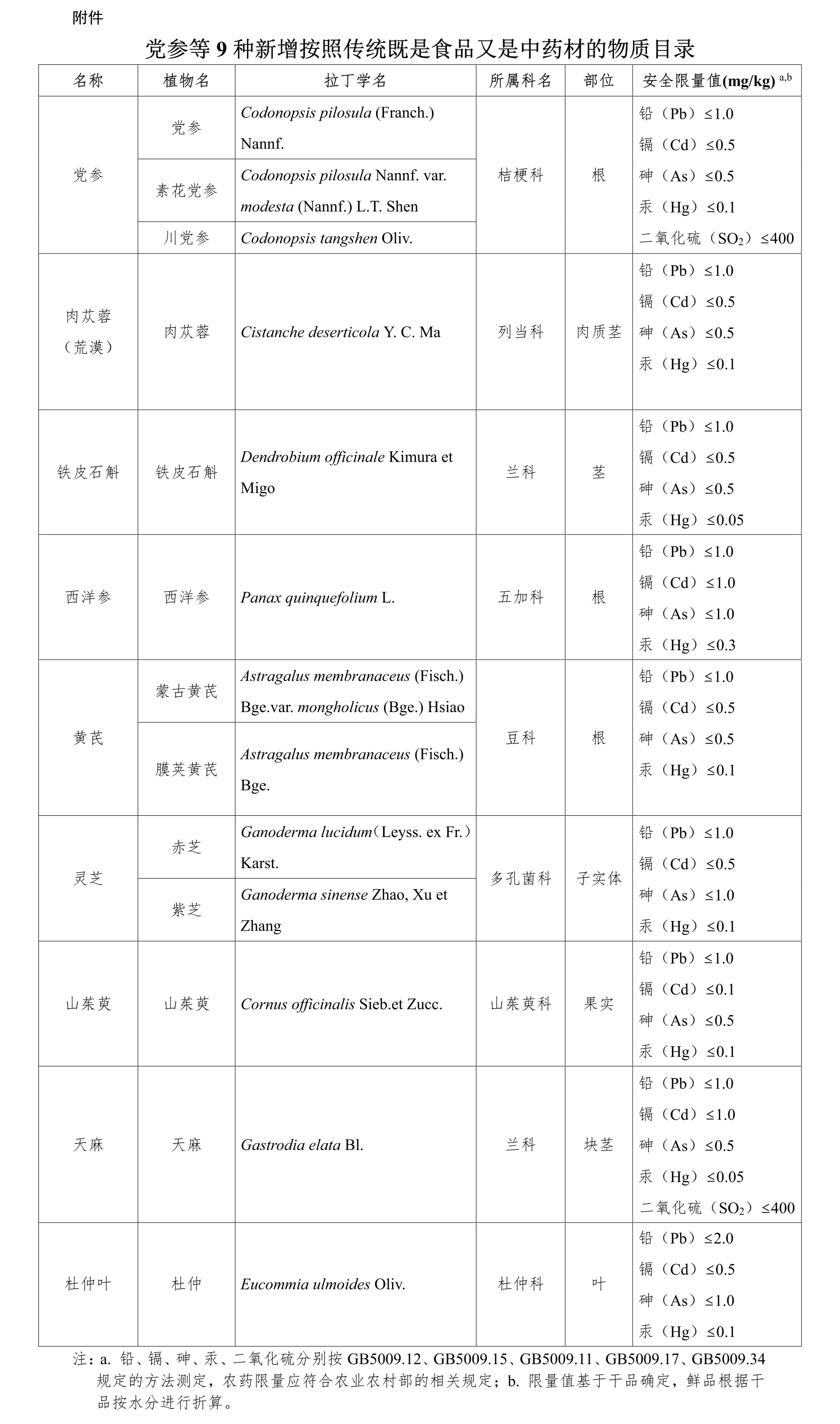 解讀《關(guān)于黨參等9種新增按照傳統(tǒng)既是食品又是中藥材的物質(zhì)公告》(2023年 第9號)