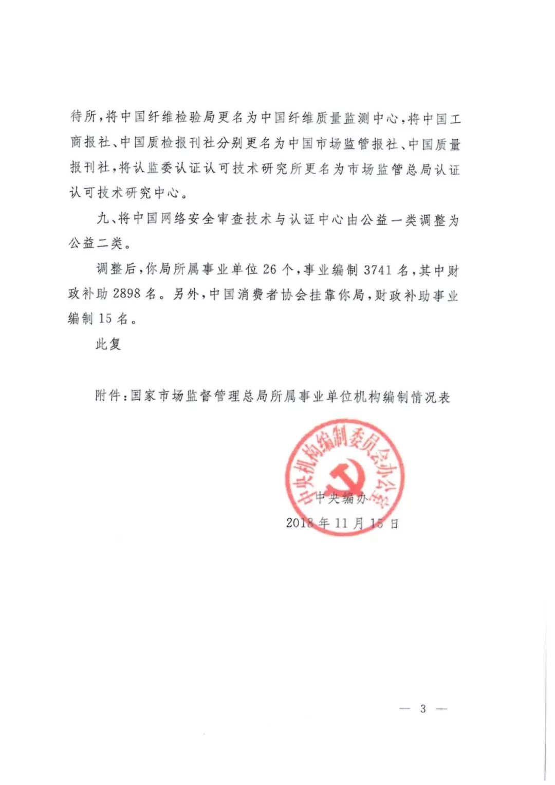 其實在2018年11月15日中央機構(gòu)編制委員會辦公室印發(fā)的文件中第三條明確批復: