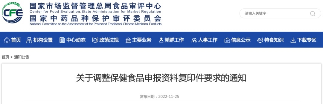審評中心 | 關于調(diào)整保健食品申報資料復印件要求的通知
