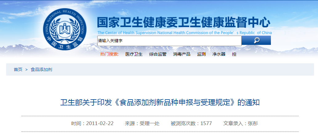 第十九條 本規(guī)定自發(fā)布之日起施行,衛(wèi)生部2002年7月3日發(fā)布的《衛(wèi)生部食品添加劑申報與受理規(guī)定》同時廢止。